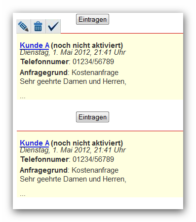 Moderieren Sie Ihre Gästebucheinträge, erscheinen neue Gästebucheinträge mit dem Hinweis noch nicht aktiviert und können mit Klick auf das Haken-Symbol freigeschaltet werden. Auch das Bearbeiten oder Löschen des Eintrags ist möglich, z.B. um Werbung zu entfernen.